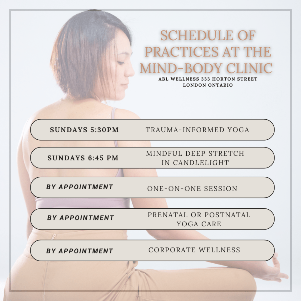 Embrace the beauty of motherhood with every breath. Our dedicated prenatal and postnatal yoga care invites you into a nurturing space where your well-being is cherished before and after your baby arrives. Whether in the cozy embrace of our studio or the comfort of your chosen sanctuary in London, Ontario, we’re here to support your journey with gentle stretches and calming breaths. Connect with us, and let’s celebrate the incredible journey of motherhood together.